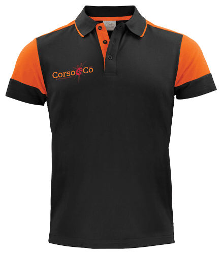 Polo prime, kleur: zwart-oranje, 50% katoen, 50% polyester.